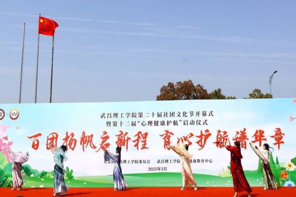 团委网3月24日报道(记者 赵丽莎 王海霞 见习记者 宋美琪 张伟晨 徐沐妍 陈俊彤)为深入贯彻习近平新时代中国特色社会主义思想,弘扬中华优秀传统文化,营造积极向上的校园文化氛围,展现社团风采,激发创新活力,增强学生的归属感和参与热情。值此武昌理工学院社团文化节二十周年之际,一场盛大的校园文化盛宴——“百团扬帆启新程,育心护航谱华章”社团文化节在东区操场隆重拉开帷幕。本次活动由共青团武昌理工学院委员会主办,校团委社团指导中心承办,全体学生社团共同协办。出席本次开幕式的领导有校党委书记汪继平教授,常务副校长别业舫教授,党委副书记、副校长林娟教授,校长助理、学生工作部李金永部长,校长助理、教务处处长王锋教授,校长助理、马克思主义学院院长彭贤则教授,校党委委员、校团委杨瑞书记,学工处杨云副处长,各学院党总支书记及团委书记。