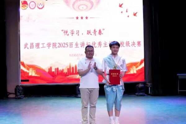 这些故事,不仅鼓励大家提高自己的演讲技能,同时,也传达出了向上好学的精神风貌,呼吁同学们用活力装点青春。演讲结束,由现场评委打分,得出最终结果。李向婷、王雨晴、杜天雪、叶娜四位选手获得优秀奖,由罗豪书记、汪慧蓉书记为其颁奖。李婷书记、熊文悦书记为获得三等奖的三名选手曾茜、孙超然、居子宁颁奖。李玮副书记和冯玫涵老师为汪一舟、郑玲峰两位选手颁发二等奖。周凯同学凭借过硬的专业能力和现场的卓越表现荣获一等奖,由杨瑞书记为其颁奖。“百生讲坛”校级优秀主讲人决赛的各位参赛选手传达出对学习宣传贯彻习近平新时代中国特色社会主义思想活动”有了更深刻的认识。作为新时代的青年,要坚持学以致用,努力成为可堪大用、能担重任的栋梁之才。
